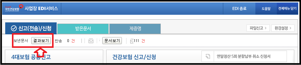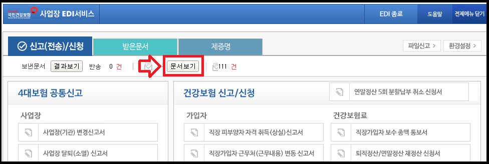 사업장 EDI 서비스 창이 새로뜹니다. 문서보기를 클릭해주세요.
