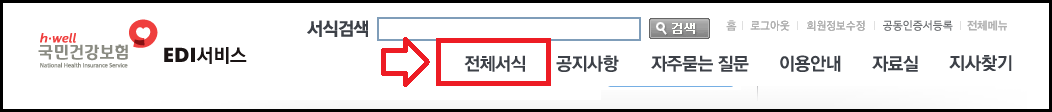 로그인 후 상단에 전체서식을 클릭해주세요.