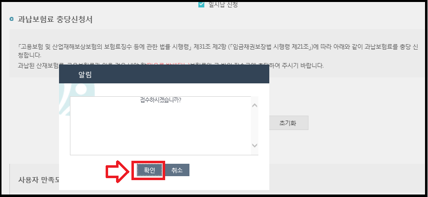이상 없는 경우 접수를 클릭해주세요.